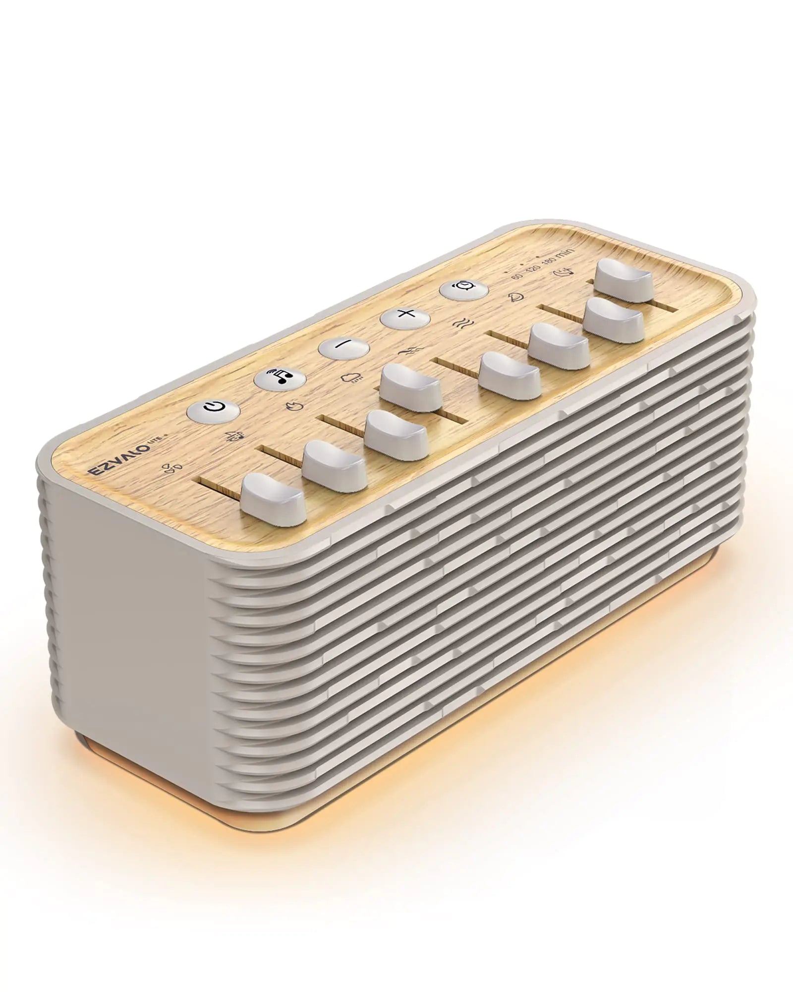 Descubre la experiencia definitiva de relajación con esta máquina de ruido blanco 5 en 1, diseñada para ayudarte a dormir profundamente, desconectar del estrés y crear un ambiente ideal en cualquier momento del día. Con más de 255 sonidos personalizables, desde lluvia suave y grillos hasta olas del mar y cuencos tibetanos, encontrarás la combinación perfecta para cada estado de ánimo. Cada sonido incluye control de volumen independiente, para que ajustes tu entorno exactamente como lo necesitas.